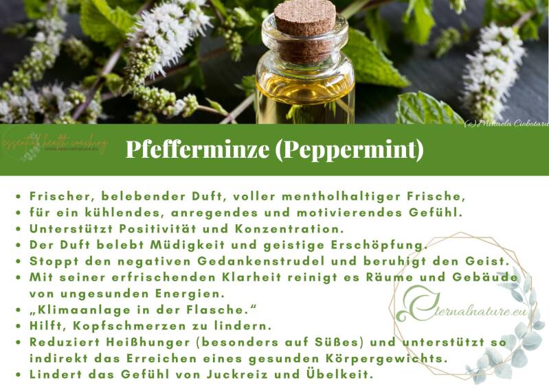Wenn du ein Minzblatt zwischen den Fingern zerreibst und den frischen Duft einatmest, umhüllt dich eine Welle von Frische und ein Gefühl von Freiheit. Es fühlt sich an, als würdest du klarer denken, präsenter sein und deine Gedanken aus dem Nebel befreien, der manchmal deinen Geist umhüllt. Das ätherische Öl der Minze, gewonnen durch schonende Wasserdampfdestillation, bewahrt diese einzigartige Frische und wirkt sowohl auf den Körper als auch auf die Psyche belebend.