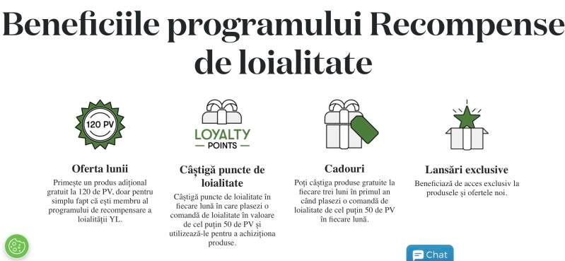 Flexibilitate în valoarea comenzii: Pentru a câștiga puncte de loialitate este necesar să plasezi o comandă de minimum 50 PV. De la o comandă lunară de 100 PV în sus te califici pentru primirea de bonusuri din rețeaua personală.